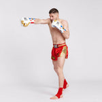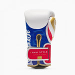 The Boxing gloves Leone Thai Style GN114 are a model designed for Muay Thai, the art of eight limbs. Made of leather, they feature a velcro closure, designed to offer optimal wrist tightening, and a padding to block kicks and knees from the opponent. The color combination of this model echoes the colors of the Thai flag.