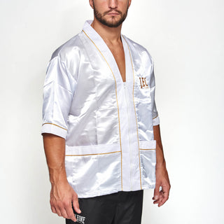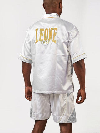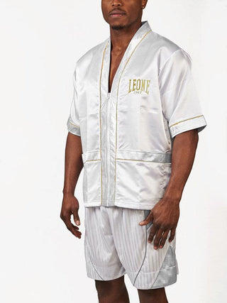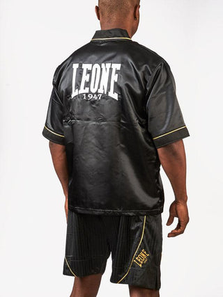 The Cornerman jacket Leone Premium AB262 is part of the Premium line, designed to give matches a touch of style and a hint of elegance. Soft and lightweight, the jacket is made of satin, comfortable and pleasant to the touch. With short sleeves, front zip and side pockets, it is ideal for seconds who go to their athletes' corner. The logo embroidered and the gold profiles embellish the product design. Equipped with logo Leone on the back, the Cornerman jacket Leone Premium is available in two colors: black and white.