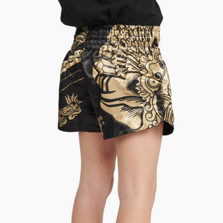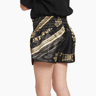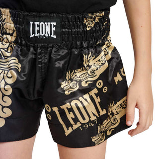 The Shorts Leone Montezuma ABJ09 are shorts for children and teenagers. Designed for combat sports, they are made with durable and comfortable fabric. At the waist, there is a comfortable elastic band that adapts to the shape of the body. Characterized by an elegant black-gold combination, these shorts stand out for the graphics that nod to Aztec decorations.