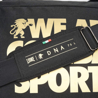 Characterized by a capacity of about 75 liters, the Sports bag Leone DNA AC966 is excellent for carrying all your gym equipment, including Shinguards and Headgear. In addition to the large main pocket, there are three side pockets to organize spaces and items neatly. Equipped with handles and shoulder strap, the Sports bag DNA stands out for its powerful and elegant style: the large gold prints make it unmistakable and modern.