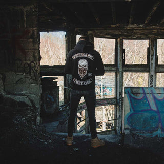 The Sweatshirt PRiDEorDiE Fight Club is dedicated to fighters of all levels and combat sports enthusiasts. Made of 100% cotton, this Sweatshirt features a hood, cuffs, and a complete front zip and zippered pockets. The Sweatshirt Fight Club expresses the street and gritty style that characterizes Pride or Die.